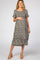 A floral maternity midi dress featuring a smocked bust, short sleeves and ruffle accents.