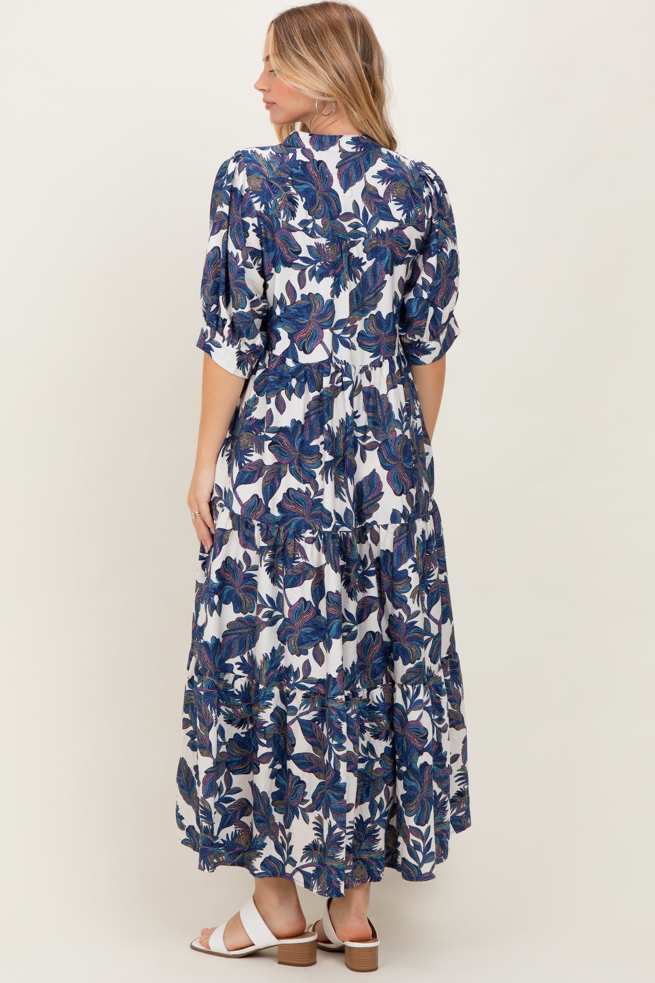 Step into effortless style with our Navy Leaf Print Tiered Midi Dress. Featuring a striking navy and white leaf pattern, this dress brings a fresh, nature-inspired vibe to your wardrobe. The tiered midi silhouette offers a flattering fit, while the button-up front and collared neckline add a touch of classic charm. Perfect for day-to-night wear, its lightweight fabric ensures comfort and breathability. With convenient side pockets and 3/4 puff sleeves, this dress blends practicality with feminine details. Pair with sandals or wedges for a chic, laid-back look that’s perfect for any occasion.