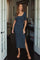 Navy Ribbed Short Sleeve Side Slit Midi Dress