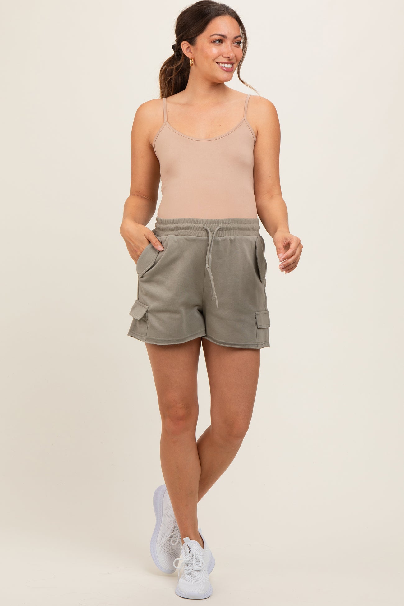 Olive Cargo Raw Hem Maternity Lounge Shorts
