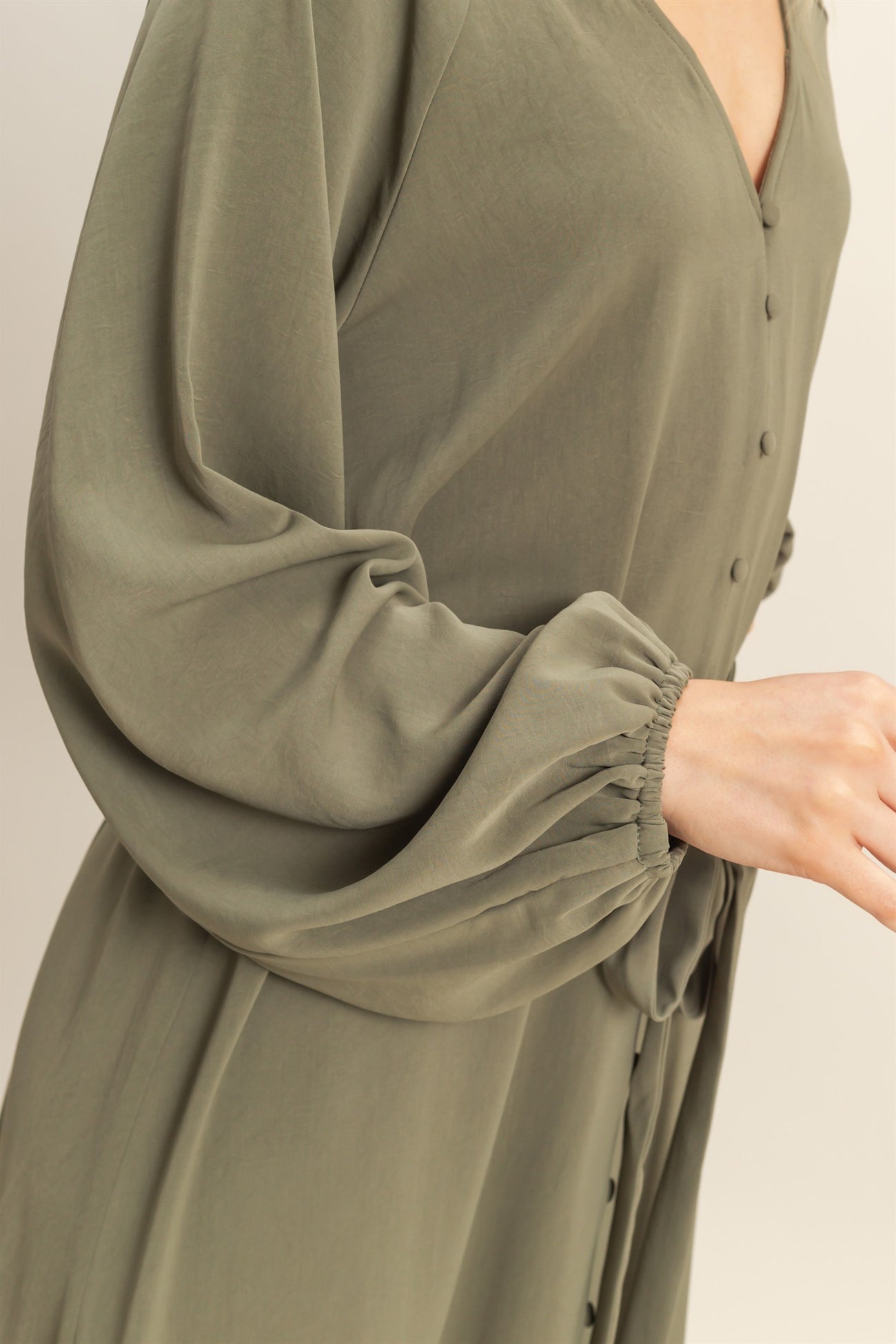 Olive Elegant Long Sleeve Waist Tie Midi Dress