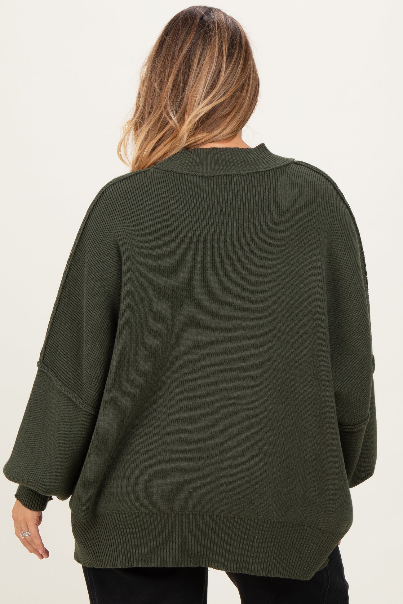 Olive Mock Neck Exposed Seam Maternity Sweater