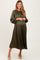 Olive Pleated Satin Smocked Waist Maternity Midi Dress