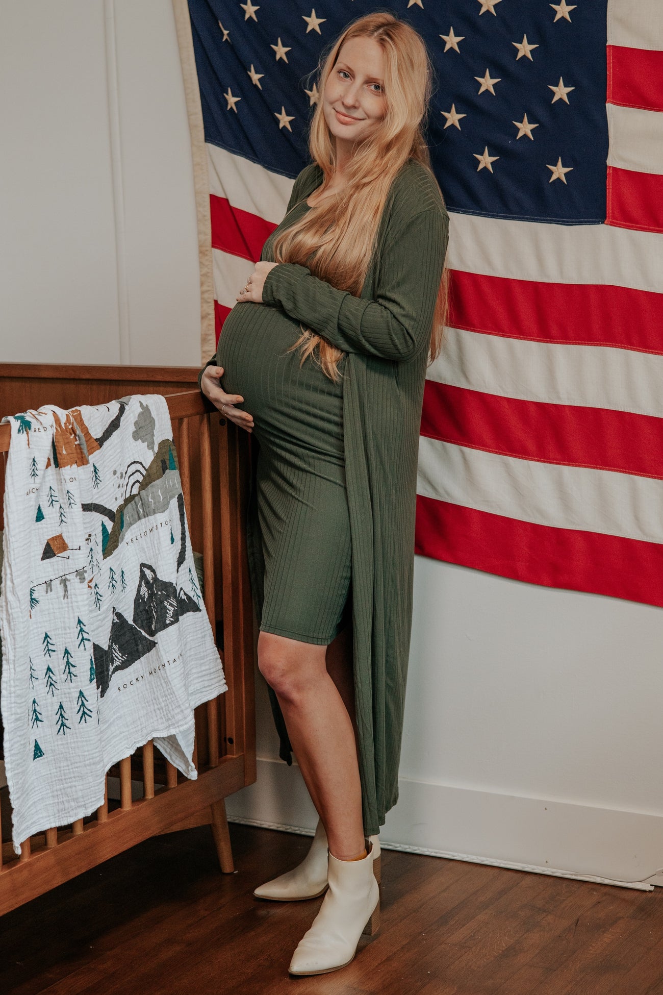 Olive Ribbed Cardigan 2 Piece Maternity Set