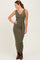 Olive Sleeveless Ribbed Belted Midi Maternity Dress
