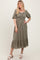 Elevate your wardrobe with this Olive Smocked Cinched Front Maxi Dress. Featuring a flattering smocked bodice and adjustable cinch detailing at the front, it perfectly accentuates your silhouette. The puff sleeves add a touch of romantic charm, while the flowing maxi skirt with a subtle ruffle hem offers effortless movement and grace. Crafted from lightweight, breathable fabric, this dress promises comfort for all-day wear. Whether you're dressing up for a summer brunch or a casual day out, this versatile olive maxi dress is your go-to choice for stylish, easy elegance. Pair it with sandals or heels for a complete look.