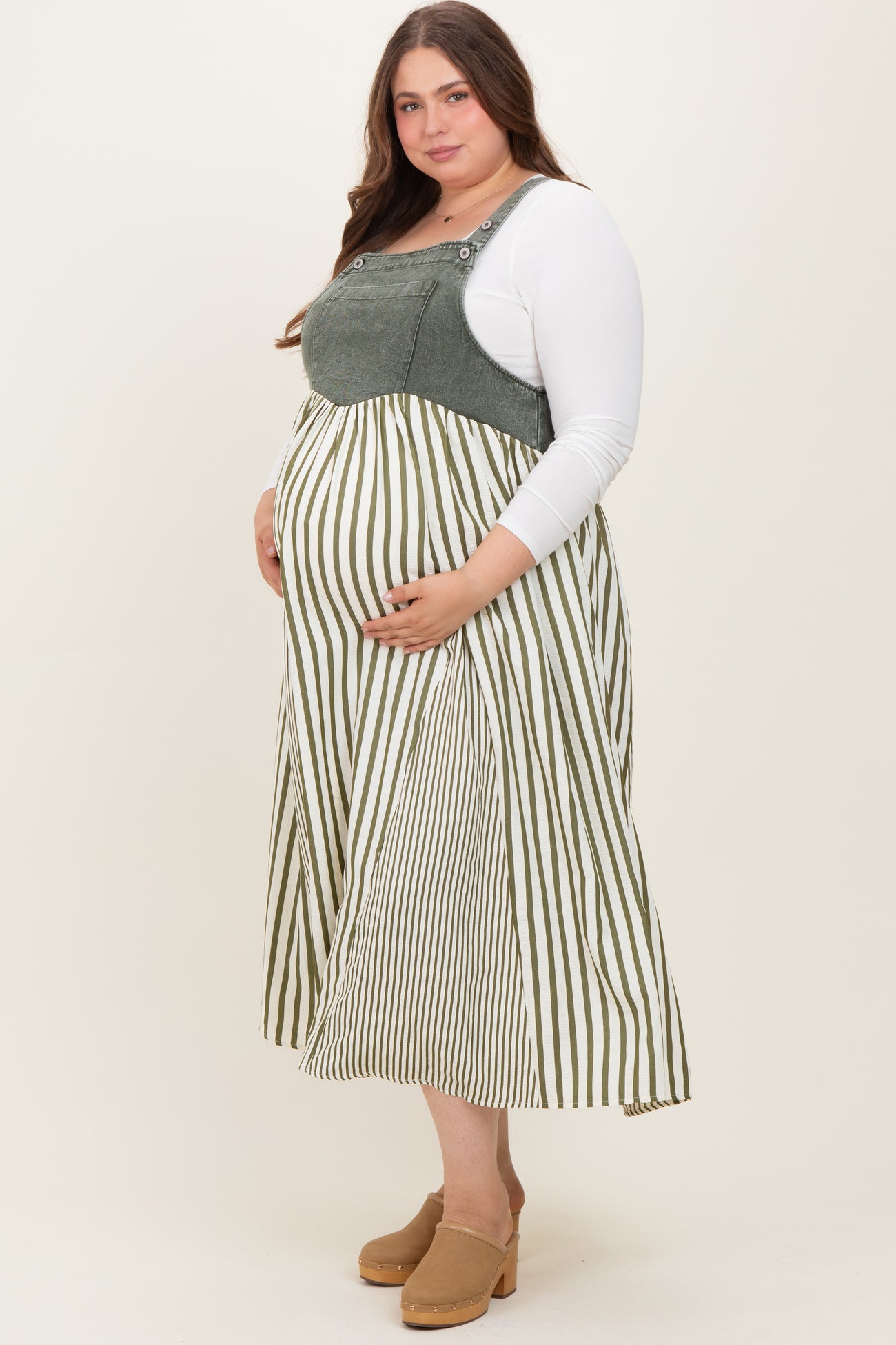 Olive Striped Colorblock Denim Contrast Maternity Plus Maxi Dress