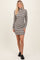 Olive Striped Mock Neck Long Sleeve Fitted Dress