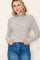 Olive Striped Ribbed Mock Neck Ruffle Hem Top