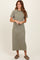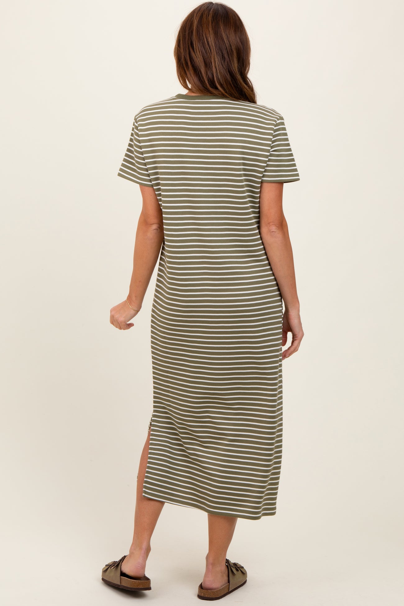 Olive Striped Short Sleeve Side Slit T-Shirt Midi Dress
