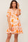 Orange Floral Smocked Puff Sleeve Maternity Dress