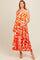 Orange Tropical Floral Shoulder Tie Tiered Maternity Midi Dress