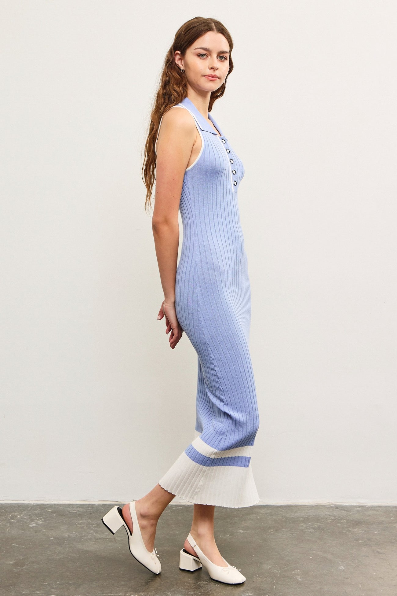 Periwinkle Knit Colorblock Stripe Sleeveless Polo Dress