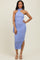 Periwinkle Mesh Draped Scarf Ruched Midi Dress