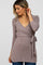 A brushed knit top featuring 3/4 sleeves and a self-tie wrap neckline.