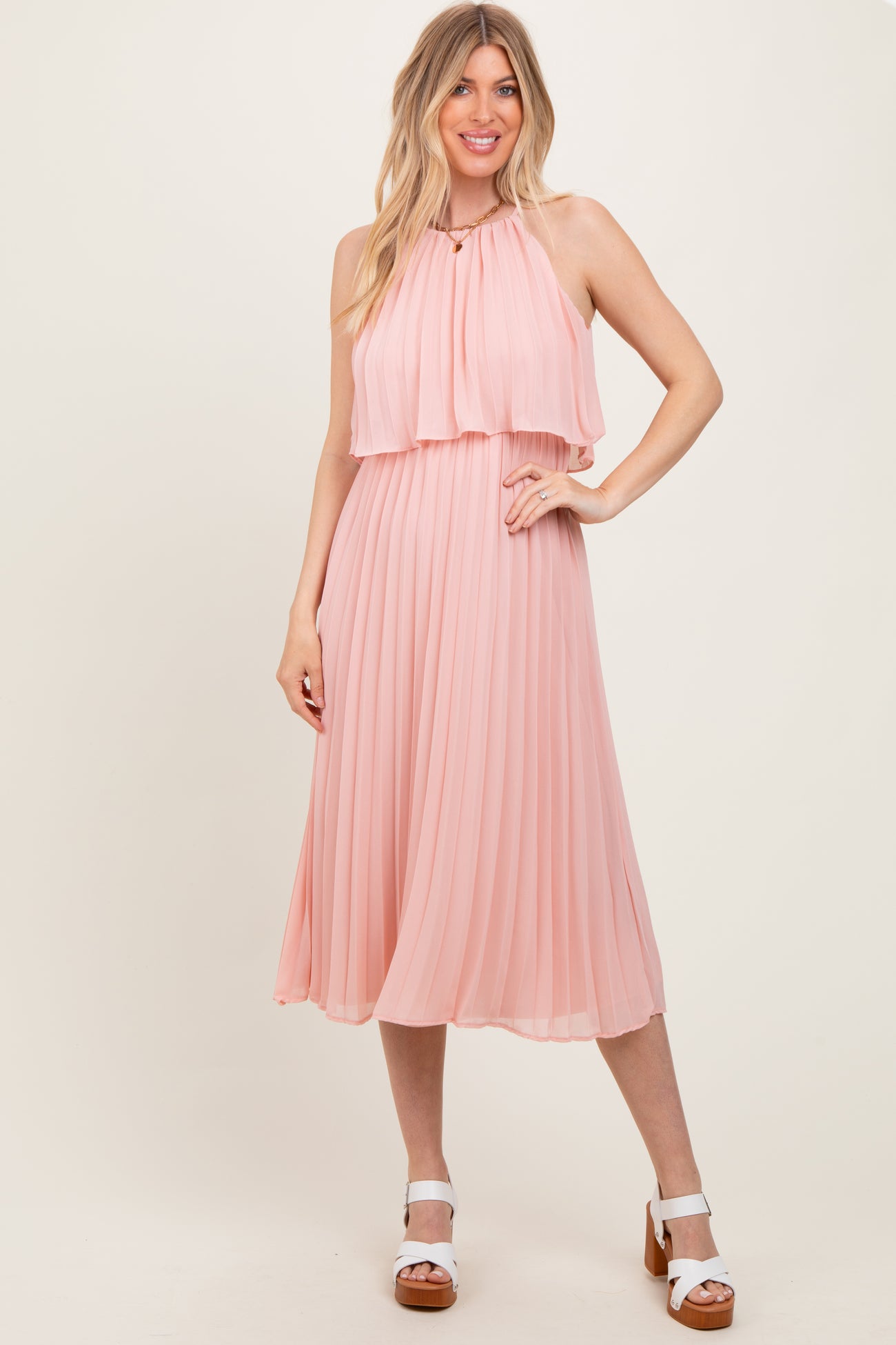 Add a touch of elegance to your maternity wardrobe with our Pink Pleated Woven Maternity Midi Dress. Designed with comfort and style in mind, this dress features soft, lightweight woven fabric and beautiful pleats that flatter your growing bump. The midi length and fluttery sleeves create a feminine silhouette, while the gentle elastic waistband ensures a flexible fit throughout your pregnancy and beyond. Perfect for baby showers, brunches, or everyday wear — you'll love how effortlessly chic and comfortable you feel in this gorgeous pink dress!