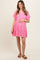 A lightweight linen maternity dress with a split v-neckline, a collar, and a tiered body.