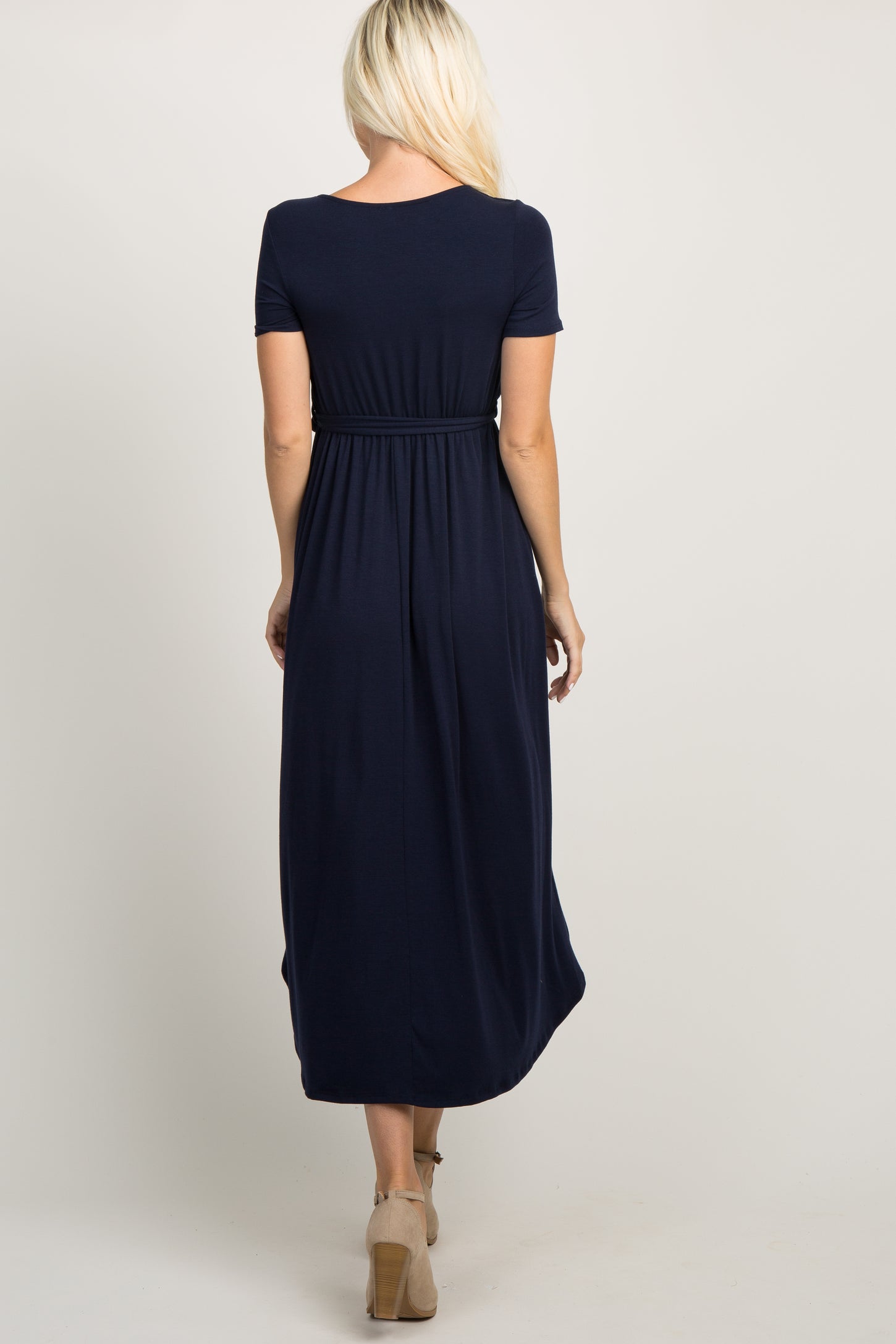 PinkBlush Navy Blue Solid Hi-Low Wrap Dress