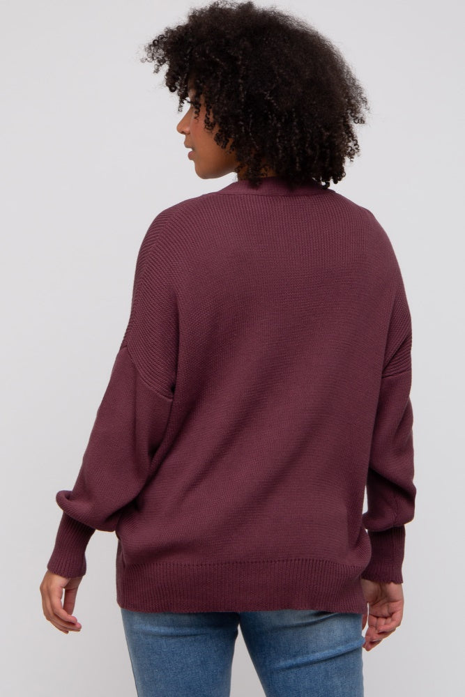 Plum Basic Ribbed Cardigan Sweater