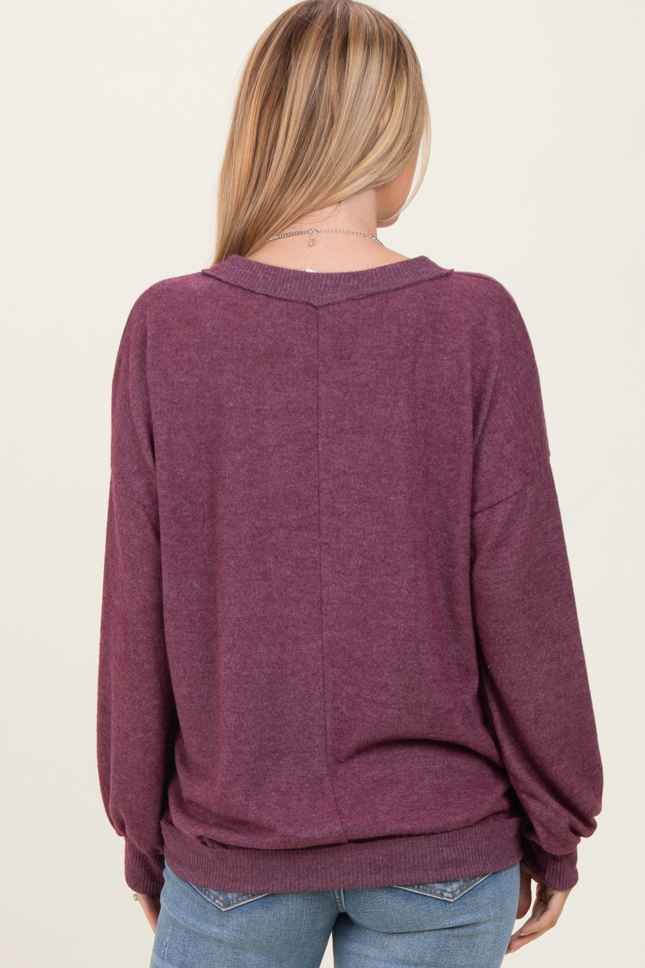 Plum Brushed Long Sleeve Ribbed V-Neck Top