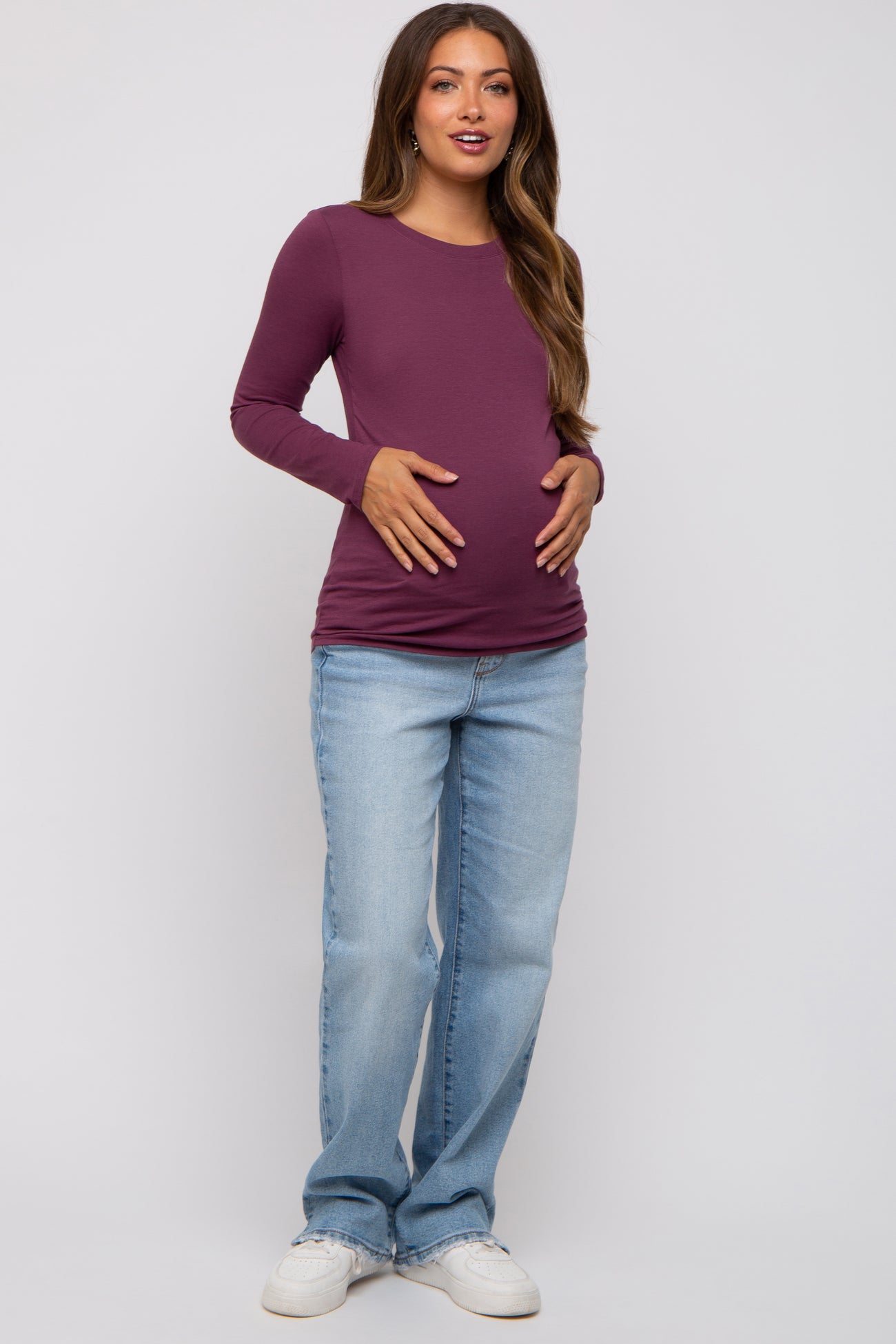 Add a pop of color to your maternity wardrobe with our Plum Long Sleeve Maternity Top! Crafted with soft, stretchy fabric, this top gently hugs your bump for a flattering silhouette throughout your pregnancy. Featuring a classic scoop neck and long sleeves, it’s perfect for layering or wearing on its own. The rich plum hue effortlessly transitions from day to night—dress it up with accessories or keep it casual with your favorite jeans. Designed for comfort and style, this versatile top will become your go-to all season long. Machine washable for easy care. Stay chic and comfortable, mama!