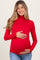 Red Brushed Knit Basic Turtleneck Maternity Top