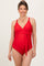 Red Crossover V-Neck Sash Tie Ruched Maternity Swimsuit