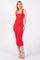 Details A solid sleeveless fitted midi dress with a square neckline. Content + Care