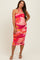 Red Flower Mesh Halter Maternity Midi Dress