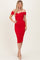 Turn heads with this stunning Red Off Shoulder Fitted Midi Dress. Designed to hug your curves perfectly, this dress features a flattering off-the-shoulder neckline that adds a touch of elegance and allure. The midi length offers a sophisticated silhouette ideal for both formal events and stylish nights out. Crafted with a stretchy, comfortable fabric, it ensures a sleek fit while allowing ease of movement. Pair it with heels and minimal accessories for a timeless, chic look that exudes confidence and glamour. Perfect for date nights, parties, or any occasion that calls for bold style.