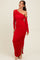 Red Ruched Mesh One Shoulder Long Sleeve Maxi Dress
