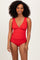 Red Scallop Trim One Piece Swimsuit