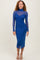 Royal Blue Mesh Overlay Fitted Midi Dress