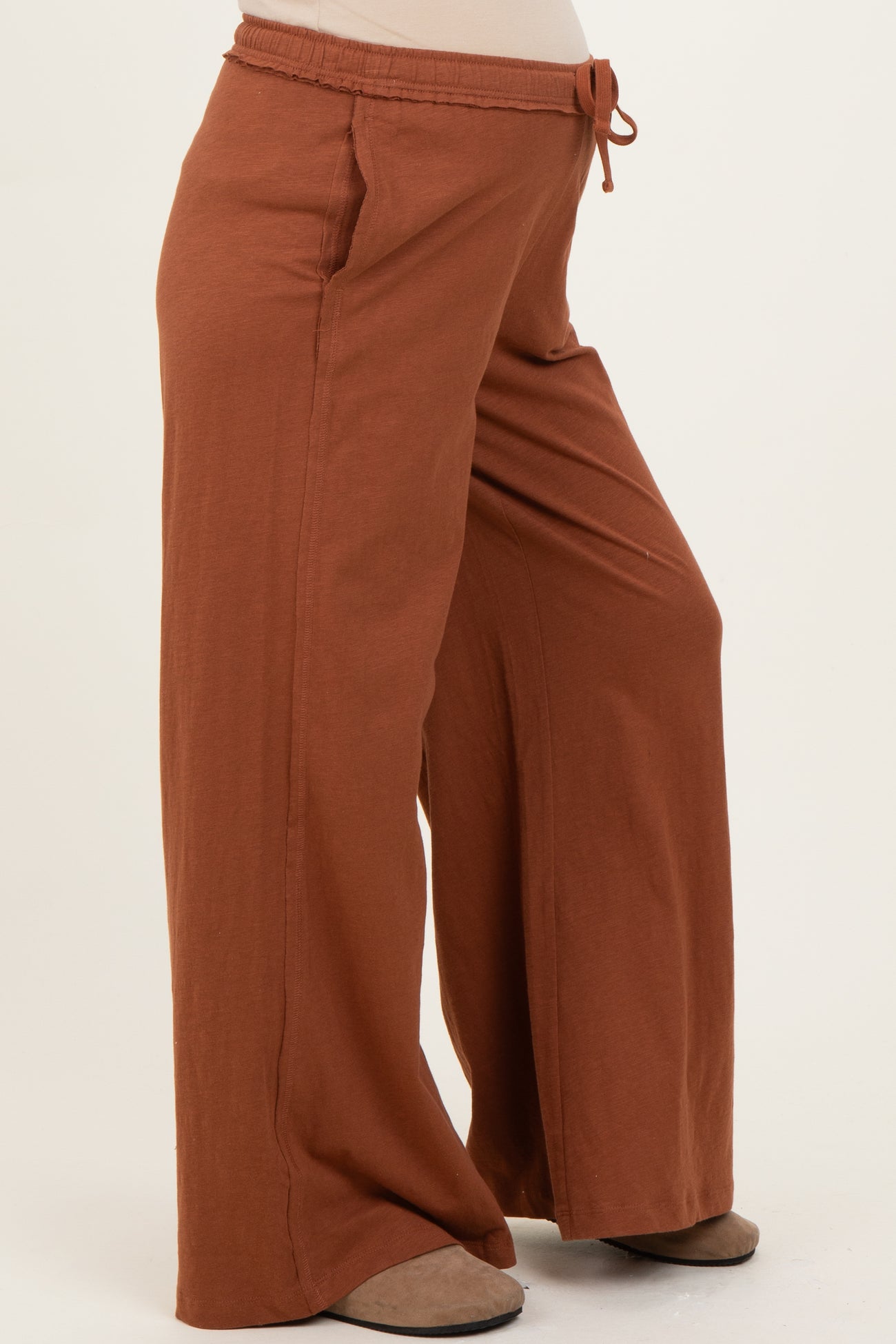 Rust Drawstring Wide Leg Maternity Lounge Pant