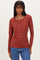 Rust Solid Ribbed Long Sleeve Button Down Tunic Top