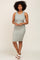 A ribbed sleeveless dress featuring side ruching and a rounded neckline.