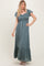 Embrace effortless elegance with our Sage Smocked Top Woven Maxi Dress. Featuring a flattering smocked bodice with subtle ruching and delicate tie details, this dress perfectly balances comfort and style. The flutter sleeves add a touch of femininity, while the button-down front and tiered ruffle hem create a flowy, graceful silhouette. Crafted in a soft sage woven fabric, it's lightweight and breathable—ideal for warm days or casual evenings. Pair it with sandals or wedges for a chic, boho-inspired look that transitions seamlessly from brunch to sunset strolls. Your new go-to maxi dress awaits!