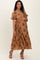Taupe Floral Embroidered Puff Sleeve Maternity Midi Dress
