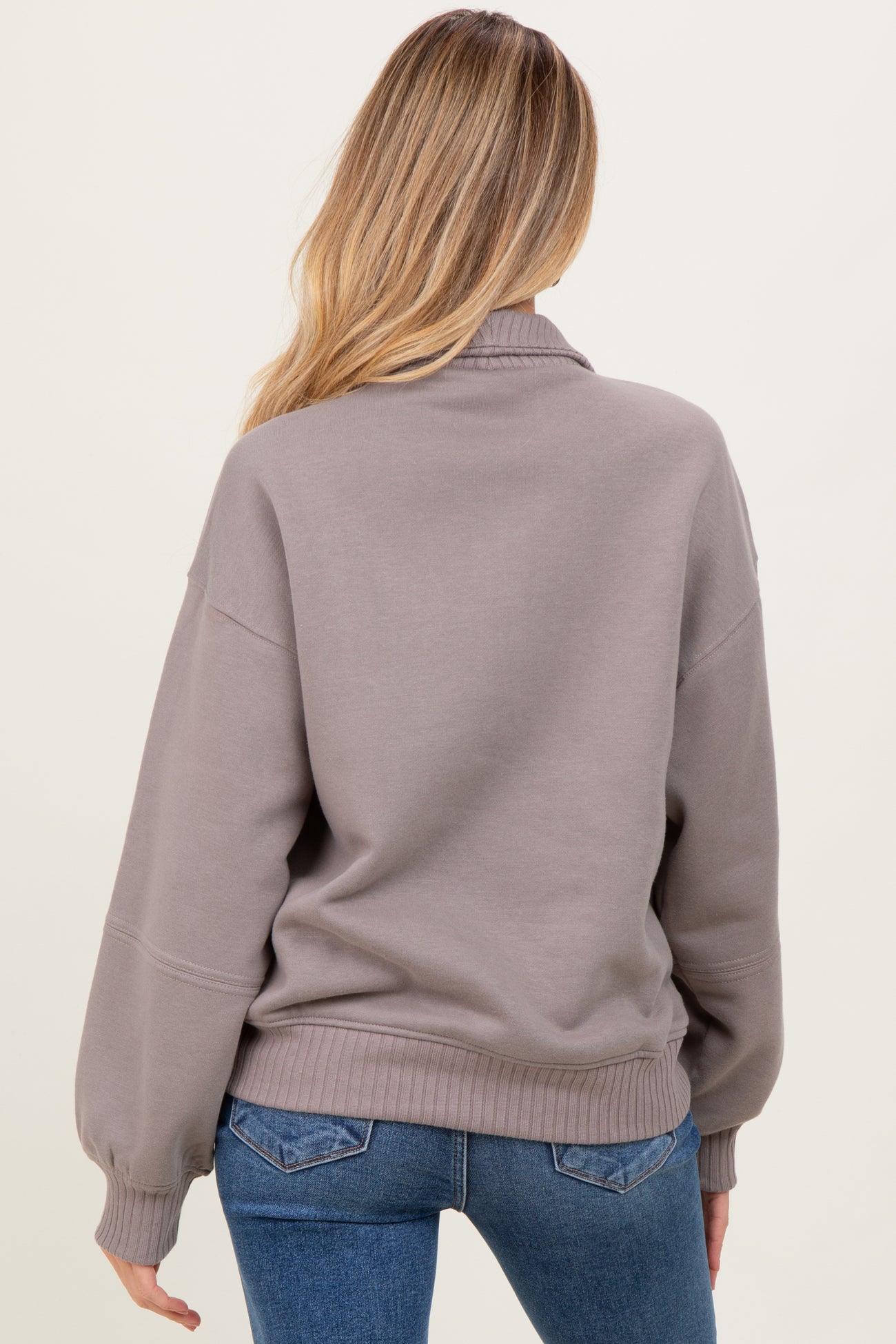 Taupe French Terry Quarter Zip Maternity Pullover
