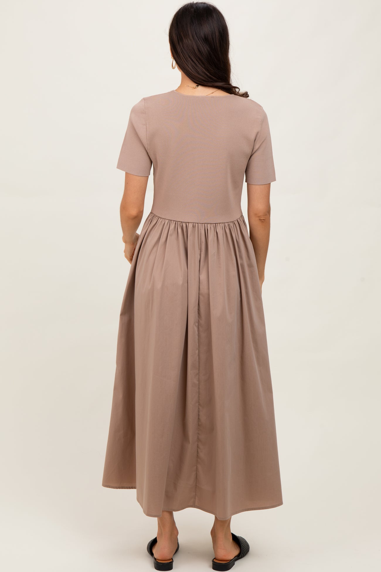 Elevate your everyday style with our Taupe Solid Maxi Dress, designed for effortless elegance and comfort. This versatile dress features a fitted ribbed bodice with short sleeves and a round neckline, paired with a flowing, gathered skirt that adds a touch of sophistication. Crafted from soft, breathable fabric, it’s perfect for both casual outings and special occasions. The timeless taupe color complements any skin tone, while the convenient side pockets add practicality without compromising style. Pair it with sandals or flats for a chic, relaxed look. Your new go-to maxi dress awaits!