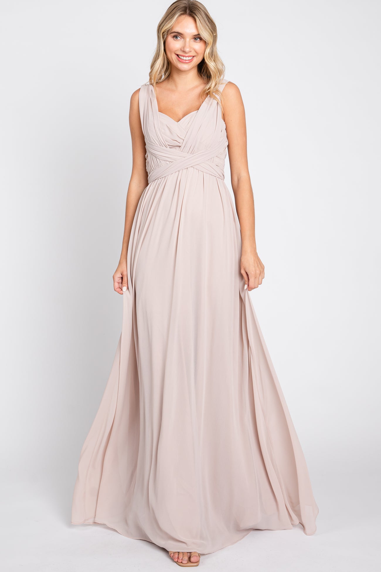 Taupe Sweetheart Convertible Chiffon Maternity Gown
