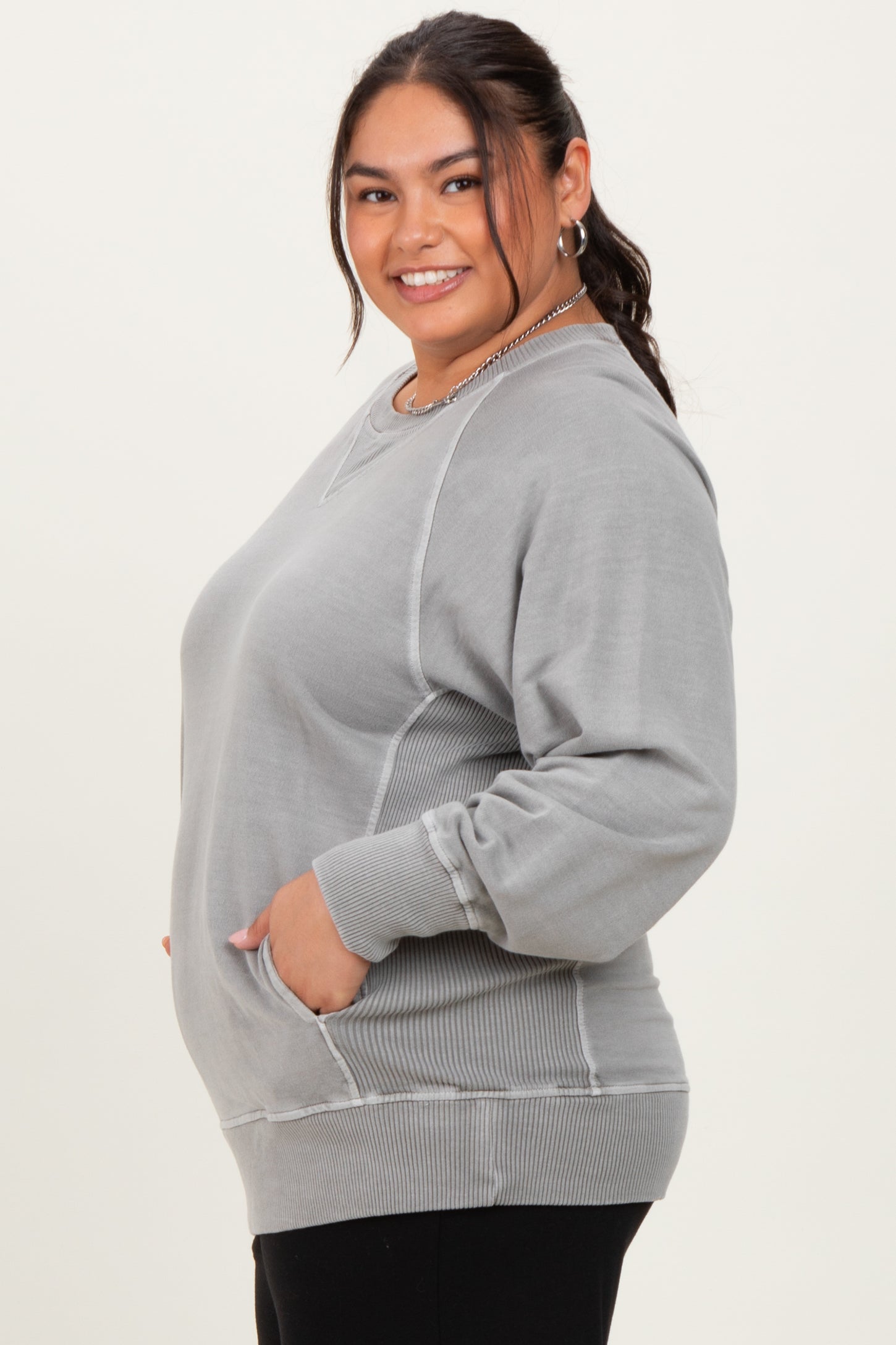 Embrace cozy comfort with our Vintage Wash French Terry Plus Pullover. Designed in a flattering plus size fit, this pullover features a soft, vintage wash fabric that feels as good as it looks. The classic crew neckline with a subtle V-stitch detail and raglan sleeves add a timeless touch, while ribbed cuffs and hem ensure a snug, comfortable fit. Perfect for layering or wearing on its own, this versatile piece pairs effortlessly with your favorite jeans or lounge pants. Stay stylish and relaxed all day long in this must-have wardrobe essential. Available in a soft grey hue for easy styling.