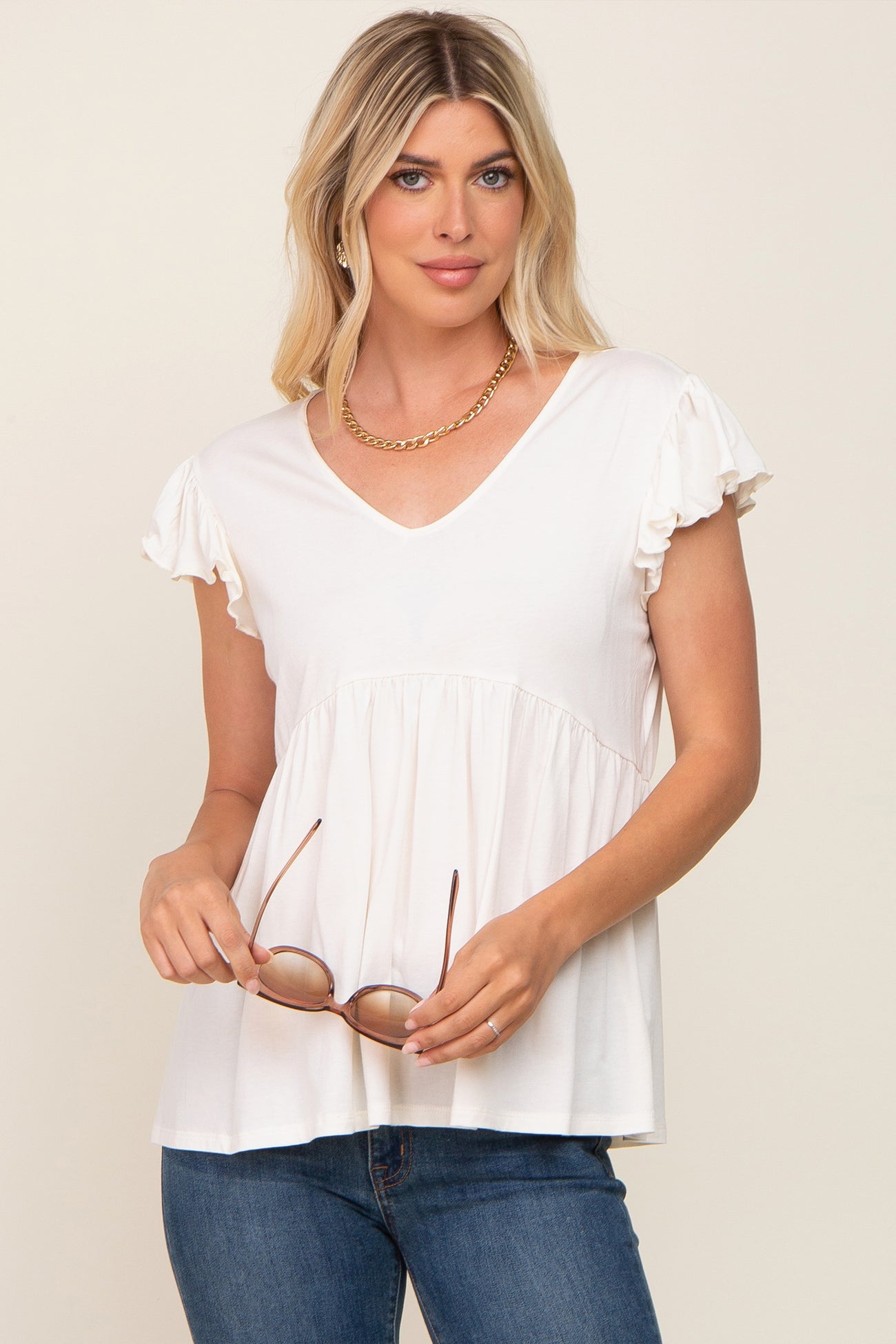 White Flutter Sleeve V-Neck Maternity Top