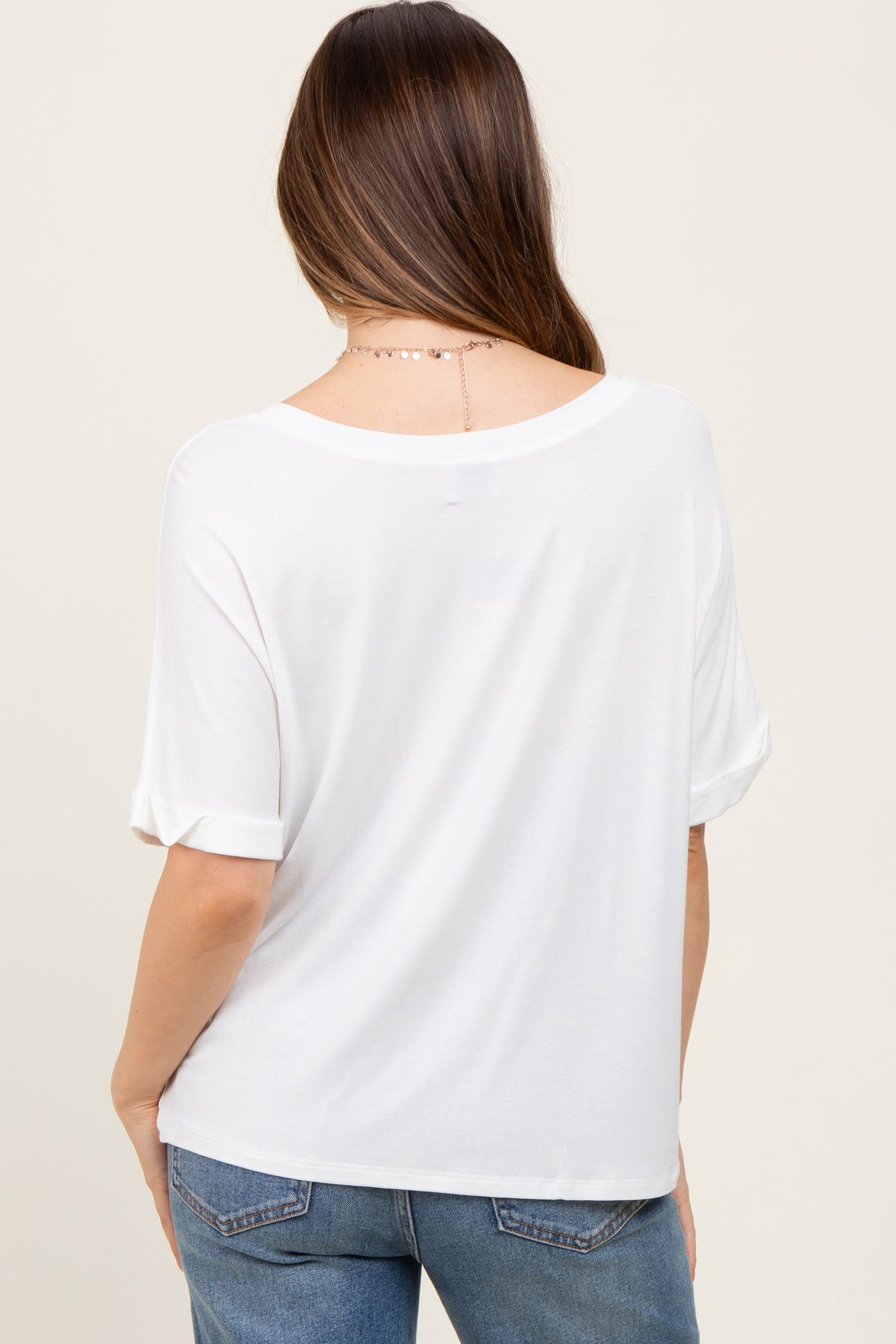 White Oversized V-Neck Front Pocket Maternity T-Shirt