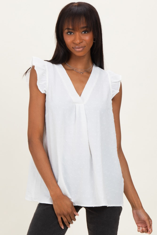 White Swiss Dot Flutter Sleeve V-Neck Maternity Top